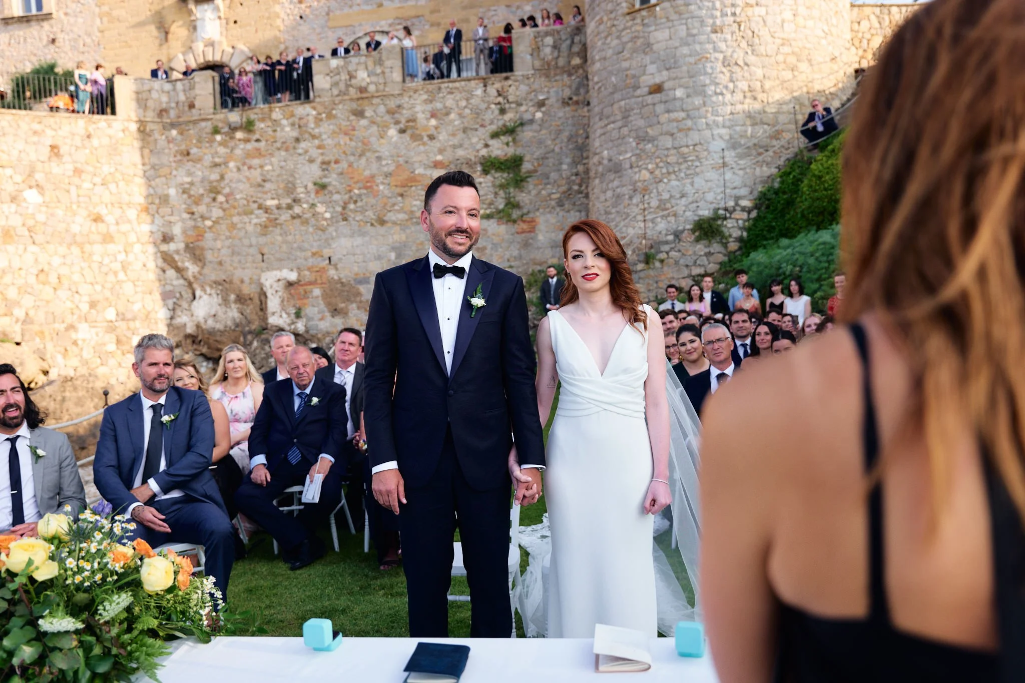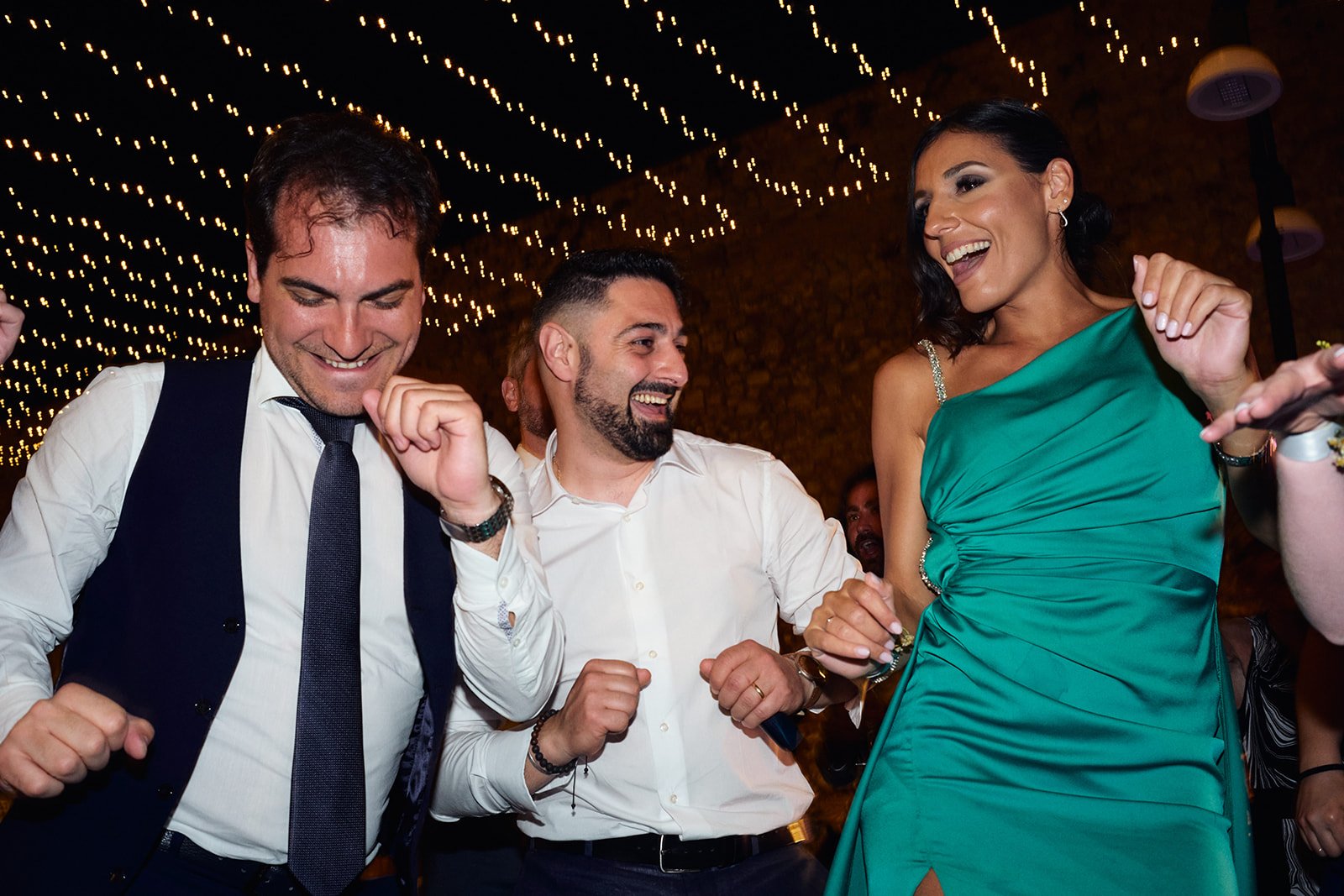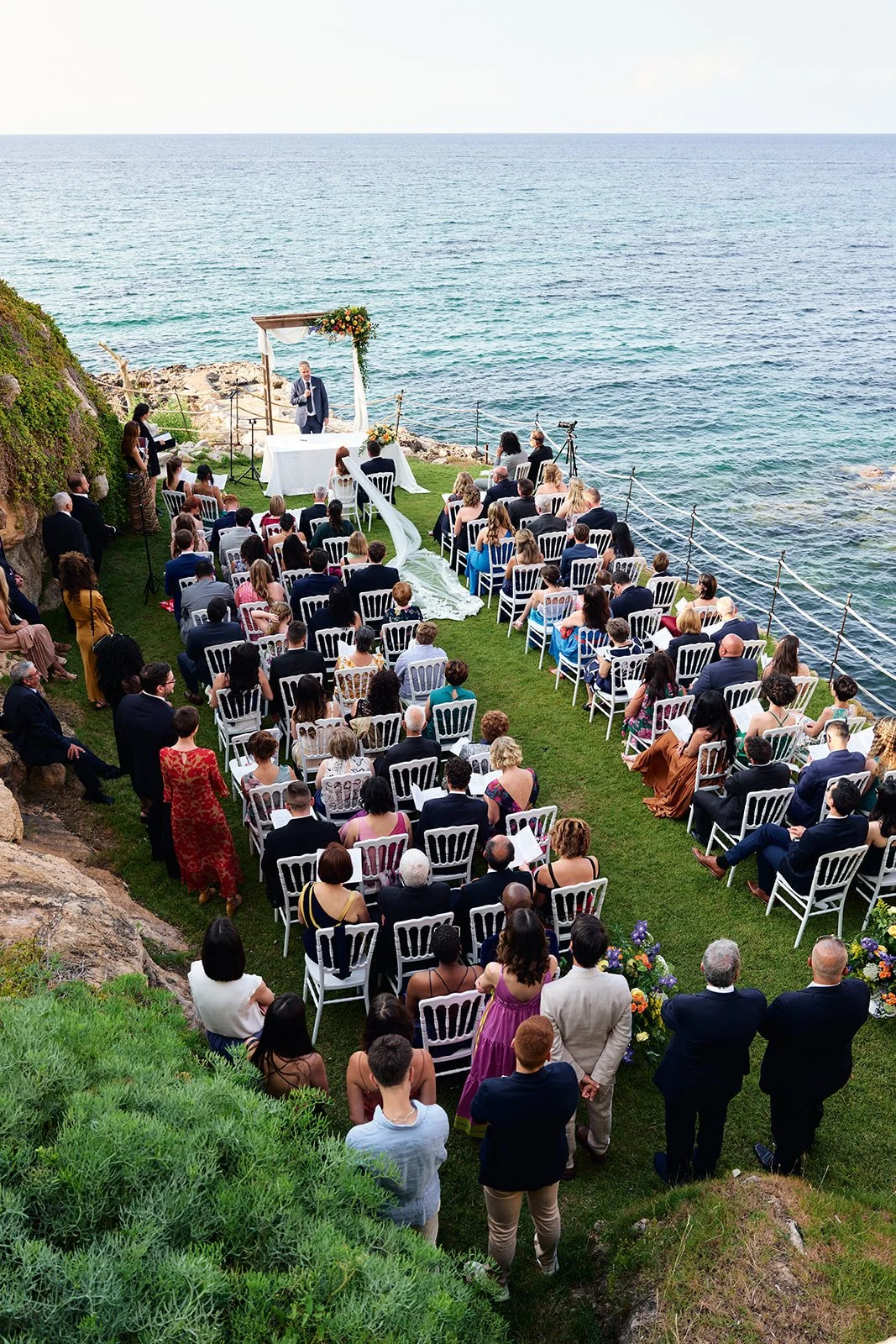 The night before our wedding, we invited friends and family to Hotel Tonnara in Trabia, Sicily, for a Welcome Party. A delectable array of Sicilian street food, local wines, and spritzes were served, creating an ambiance filled with local flavor and tradition. The highlight of the our evening might have been the surprise serenade by Jeff to Francesca, honoring the Sicilian tradition..
